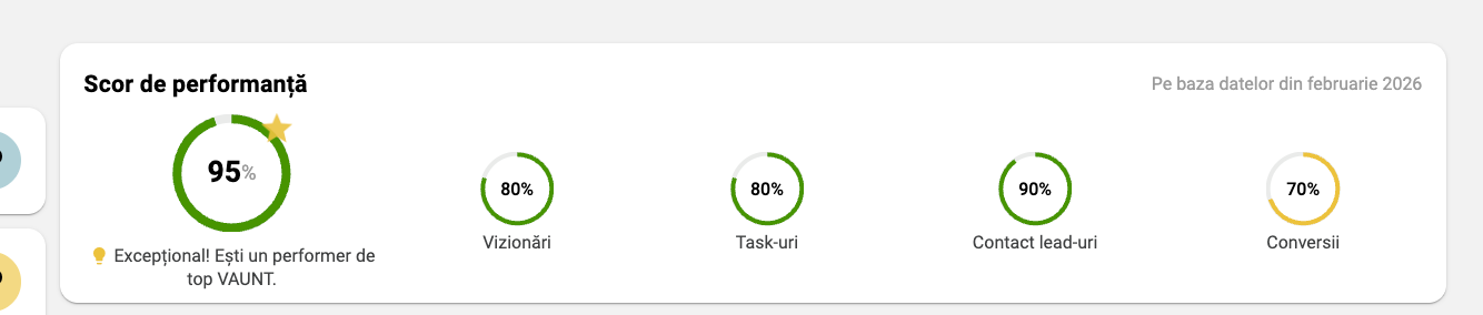 In 2026, we introduced a new feature in VAUNT: the Performance Score. Using AI, we anonymously analyze the results of all VAUNT users so that each client can understand where they stand relative to the market* and identify opportunities for improvement.